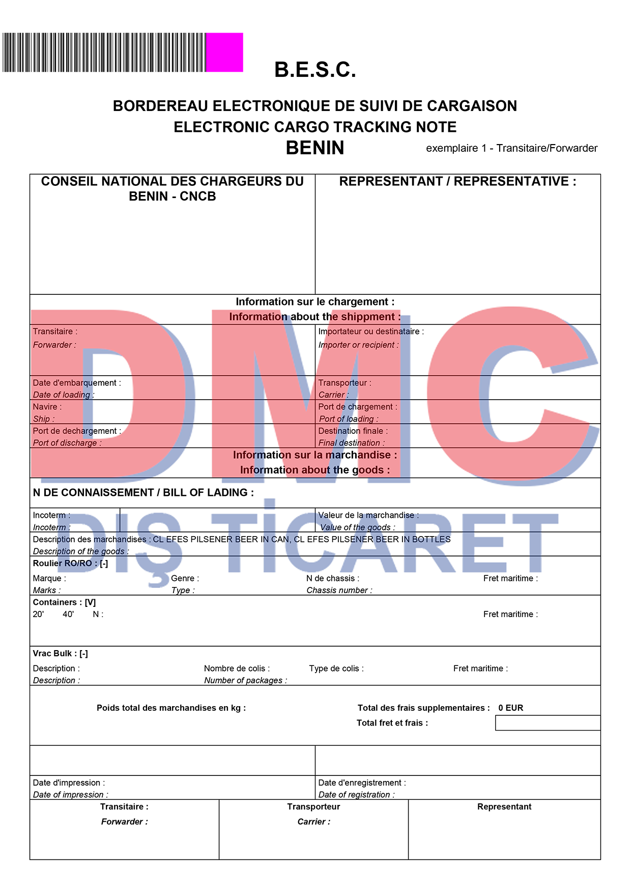 Benin Cotonou BESC belgesi 4 Ocak 2010 itibarı ile bu ülkeye yapılan tüm ihracatlarda alınması zorunlu bir evrak olarak belirlenmiştir.