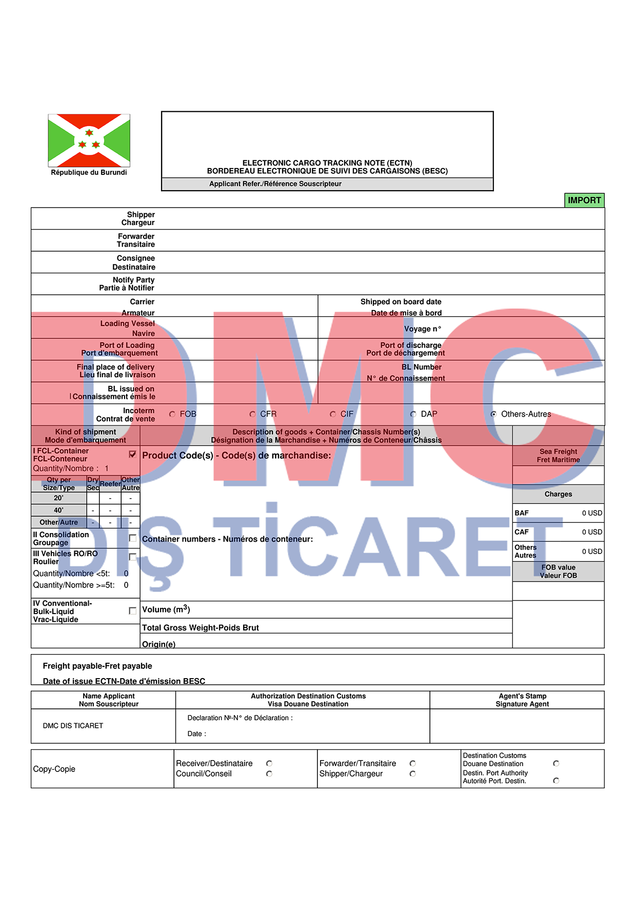 Burundi ECTN sertifikasının temin edilmesi; Burundi hükumetinin 18 Mart 2014 tarihinde çıkarmış olduğu 540/409 numaralı yasa gereği, 1 Nisan 2014 tarihi itibarı ile bu ülkeye yapılan tüm ihracatlarda zorunlu hale getirilmiştir.