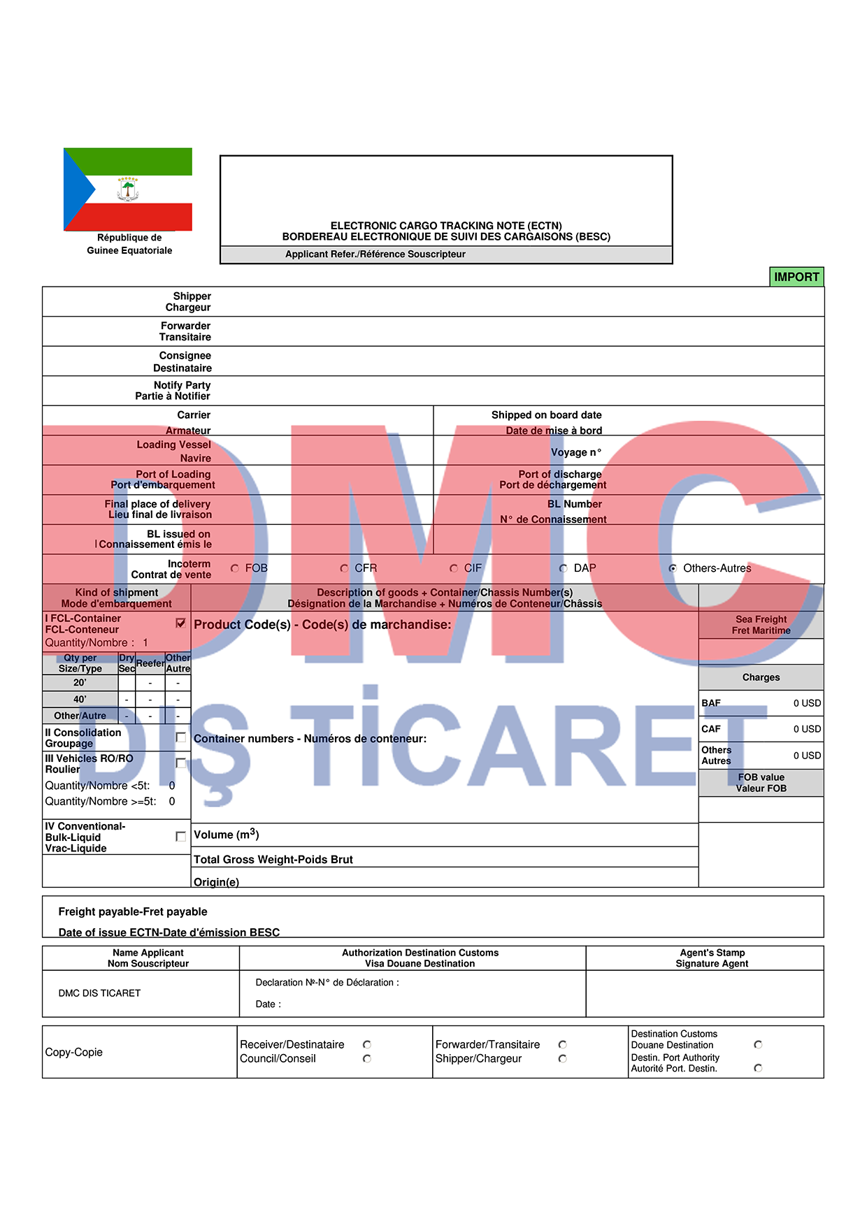 Ekvator Ginesi FESO (Formulario Electrónico para el Seguimiento de Operaciones) sertifikası, Gine Finans ve Bütçe Bakanlığının almış olduğu karar uyarınca; 1 Temmuz 2016 tarihinden itibaren bu ülkeye yapılan tüm deniz yolu yüklemeleri için zorunlu hale getirilmiştir.